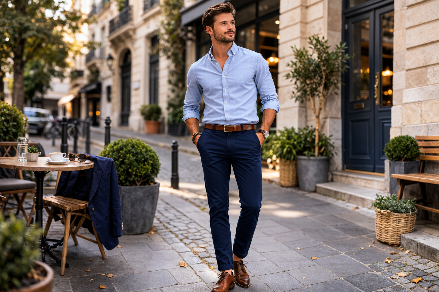 Vous avez opté pour un chino bleu marine ? Parfait. Mais pour que votre tenue soit au top, évitez ces erreurs courantes et misez sur des détails qui font la différence.